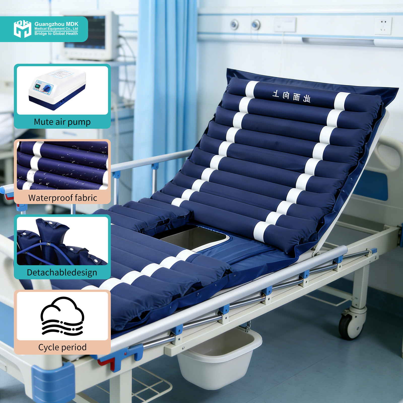 编组 Ultra-Quiet Operation: The high-efficiency mute air pump operates at a whisper-quiet noise level of ≤45dB, ensuring uninterrupted patient rest.