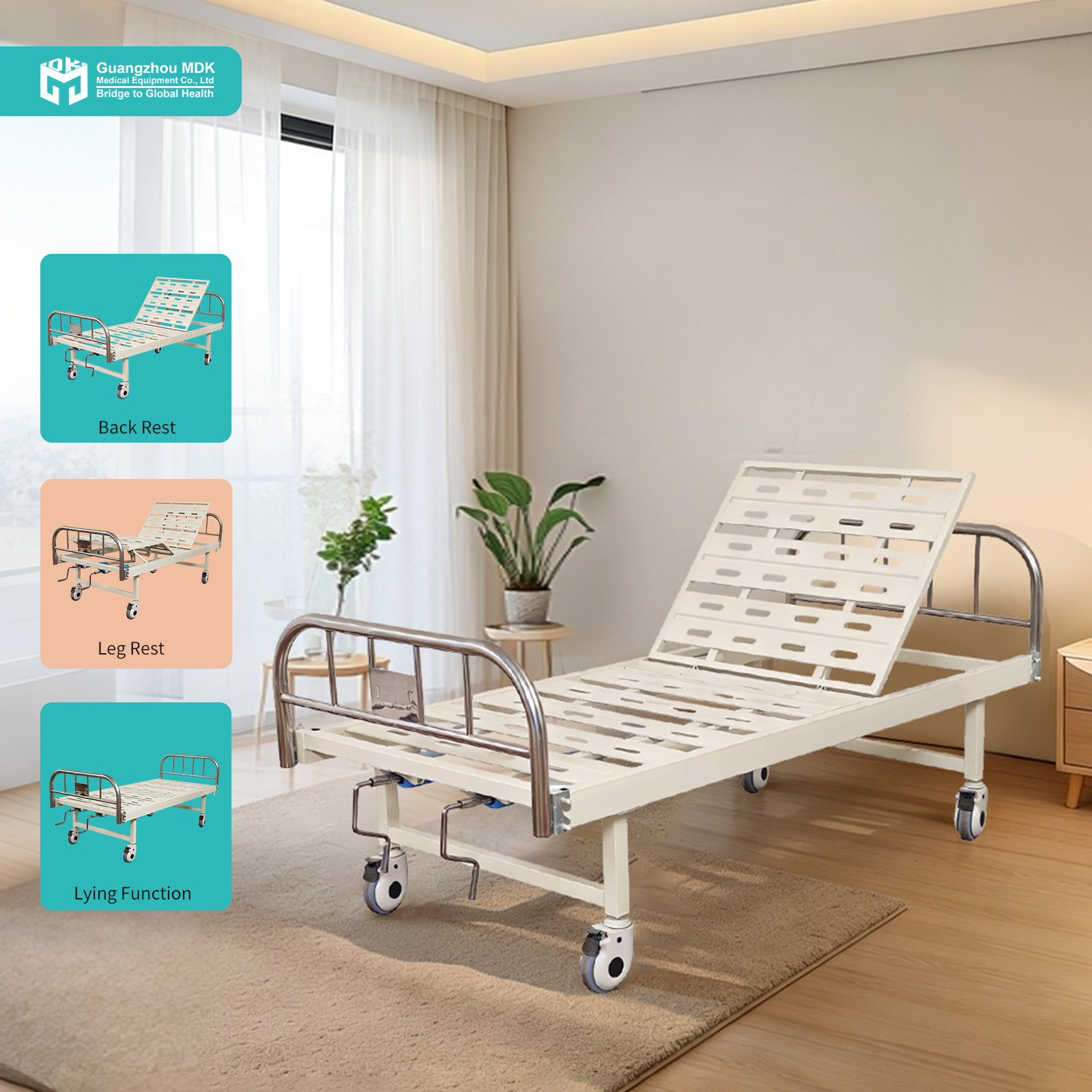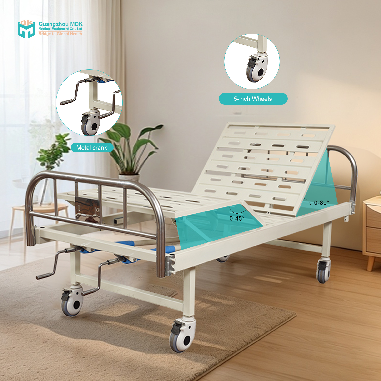 Designed for simplicity, mobility, and longevity, this manual 2-function nursing bed features two robust iron cranks. Caregivers can effortlessly adjust the backrest (0-80°) and leg elevation (0-45°). This fundamental adjustability significantly improves patient comfort and blood circulation without relying on electricity, making it a perfect, cost-effective solution for basic clinics and cost-conscious medical facilities.