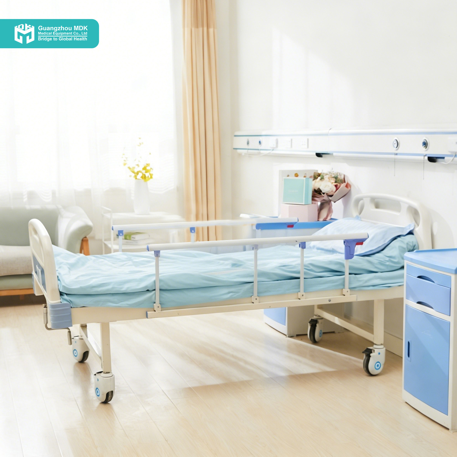 Designed for simplicity and durability, this manual single-crank hospital bed offers essential patient comfort features. The manual mechanism allows for precise 0-75° backrest adjustment via a robust, foldable metal crank. It is an ideal choice for facilities requiring reliable, low-maintenance patient positioning.