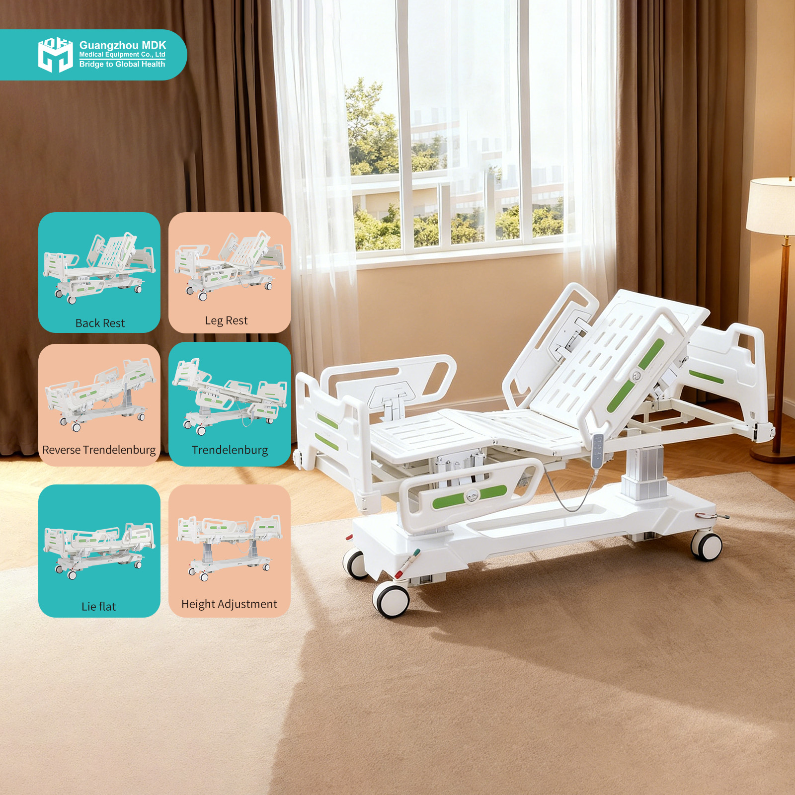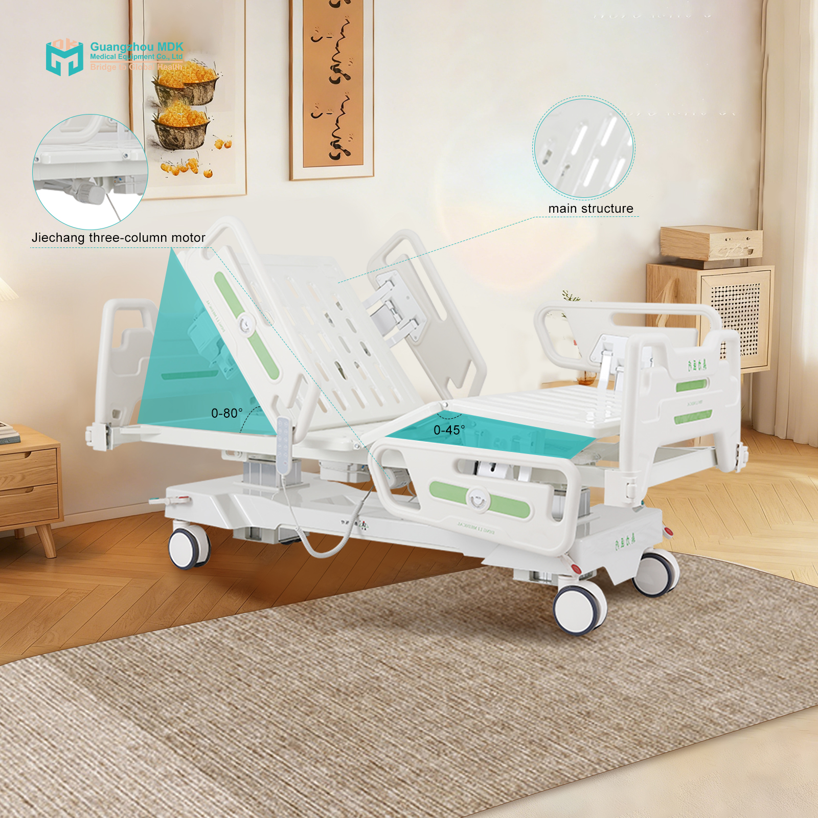 Electric 5-Function Two-Column Nursing Bed with Central Casters & DL PP Guardrails
