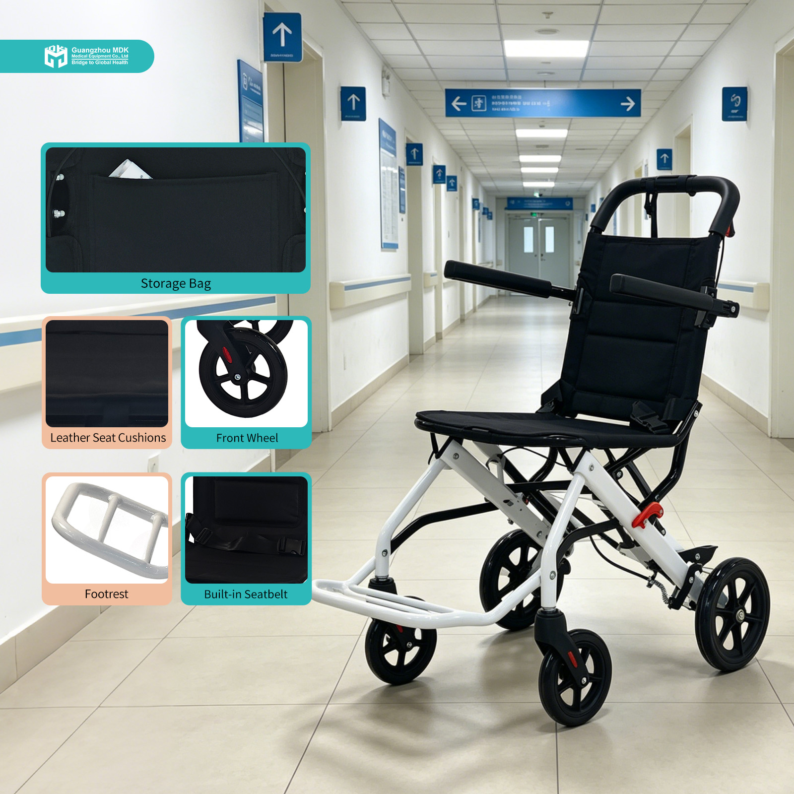 This ultra-lightweight transport wheelchair is the ultimate mobility solution for travel and daily transit. Constructed from a premium painted aluminum alloy frame, it weighs an incredibly light 7.55KG, making it perfect as anairplane wheelchairor for easy car trunk storage. It features a quick-folding mechanism, flip-up armrests for easy patient transfers, and puncture-free PVC solid wheels (6″ front, 8″ rear). Complete with a breathable cushion, a built-in seatbelt, and a rear storage bag, it comfortably and safely supports up to 100KG.