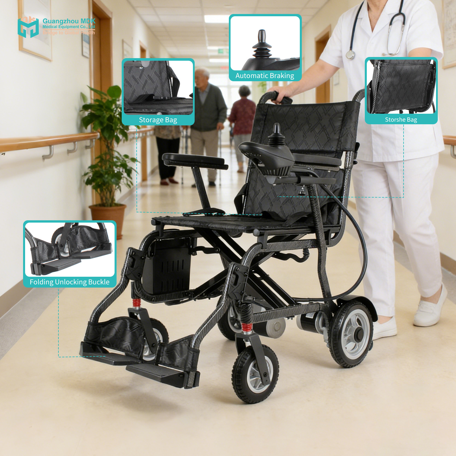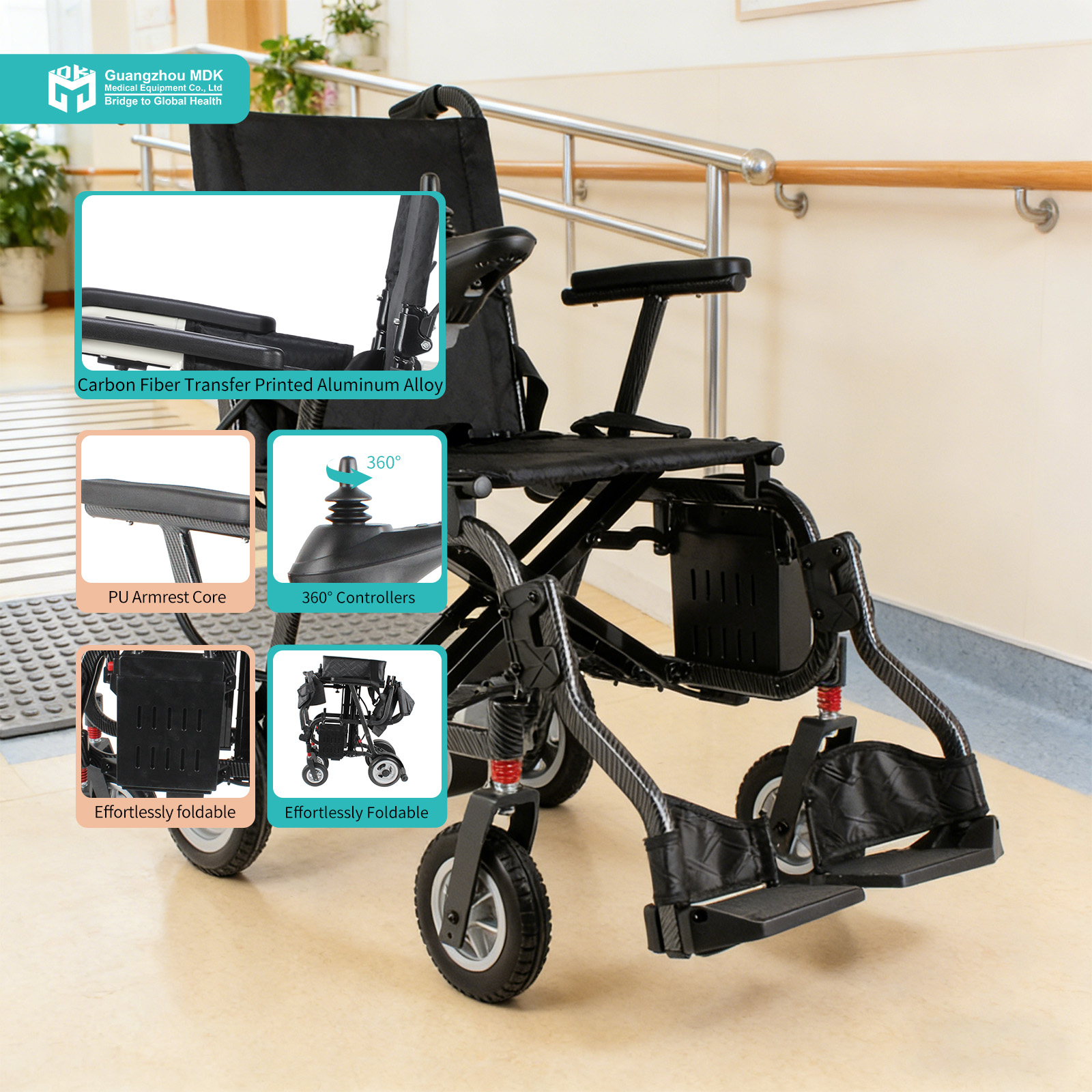 Ultra-Lightweight Foldable Electric Wheelchair with Carbon Fiber Pattern Aluminum Frame